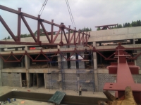 Монтаж металлоконструкций ферм, прогонов и металлического настила, конструкции спортивно-оздоровительного центра.