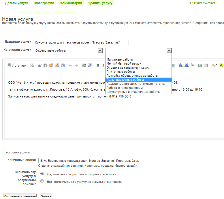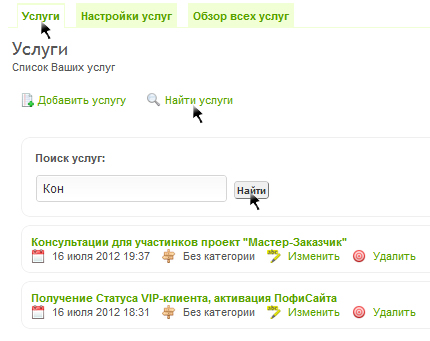 - Ввести заголовок(или часть заголовка) услуги(рис.).