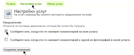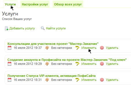 - В открывшемся окне, напротив интересующей Вас услуги нажать "Изменить".