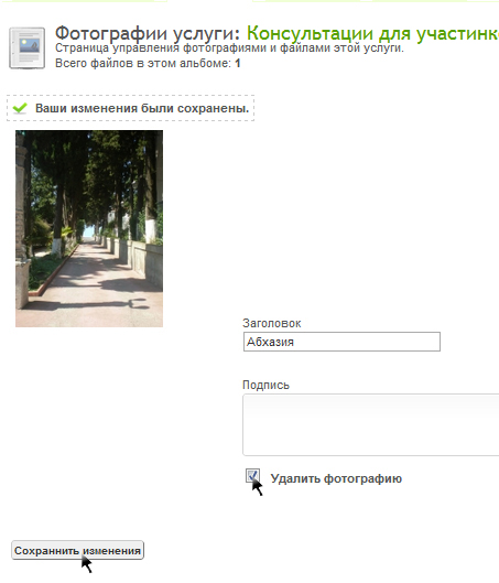 - Добавьте заголовок и/или подпись, или отметьте фотографию на удаление(рис.)